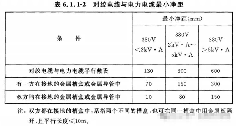 这个强弱电缆之间距离在很多项目中是验收的重点,大家做项目时不要忽略了,最好是按上面表格中要求施工。