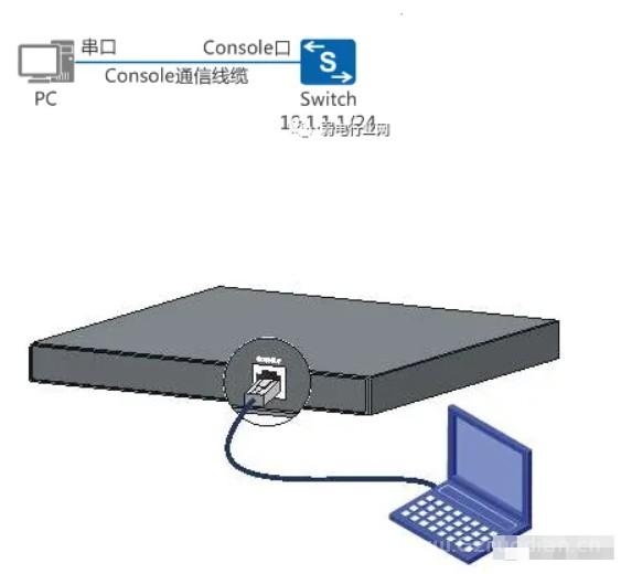 使用Console通信电缆连接交换机与PC,这个一般购买设备时是自带的。