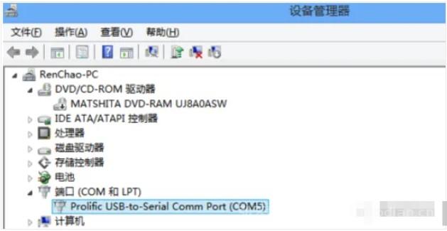 选择端口为Com5,可以在在“设备管理器”中查看,选择波特率为9600。