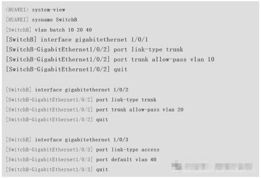 # 配置交换机SwitchB。