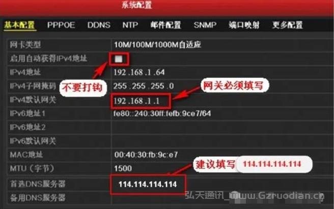 进入硬盘录像机本地:主菜单-系统配置-网络配置-基本配置,设置局域网网络参数。确保设备在局域网内能够访问。