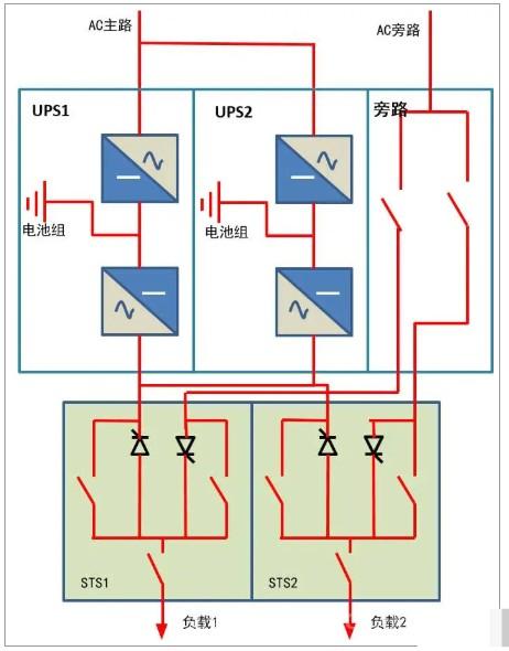 UPS1的静态旁路开关为系统瓶颈,一旦故障可能导致负载断电;