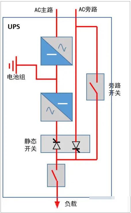 前面列举了并机冗余模式,最后看看UPS单机的原理: